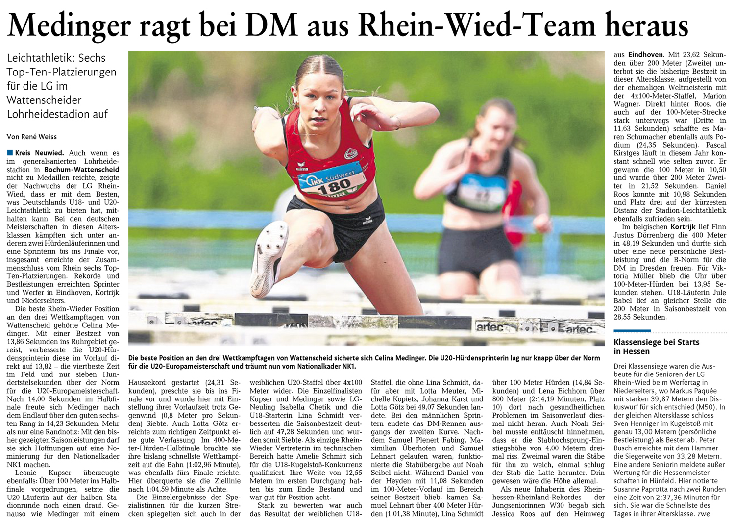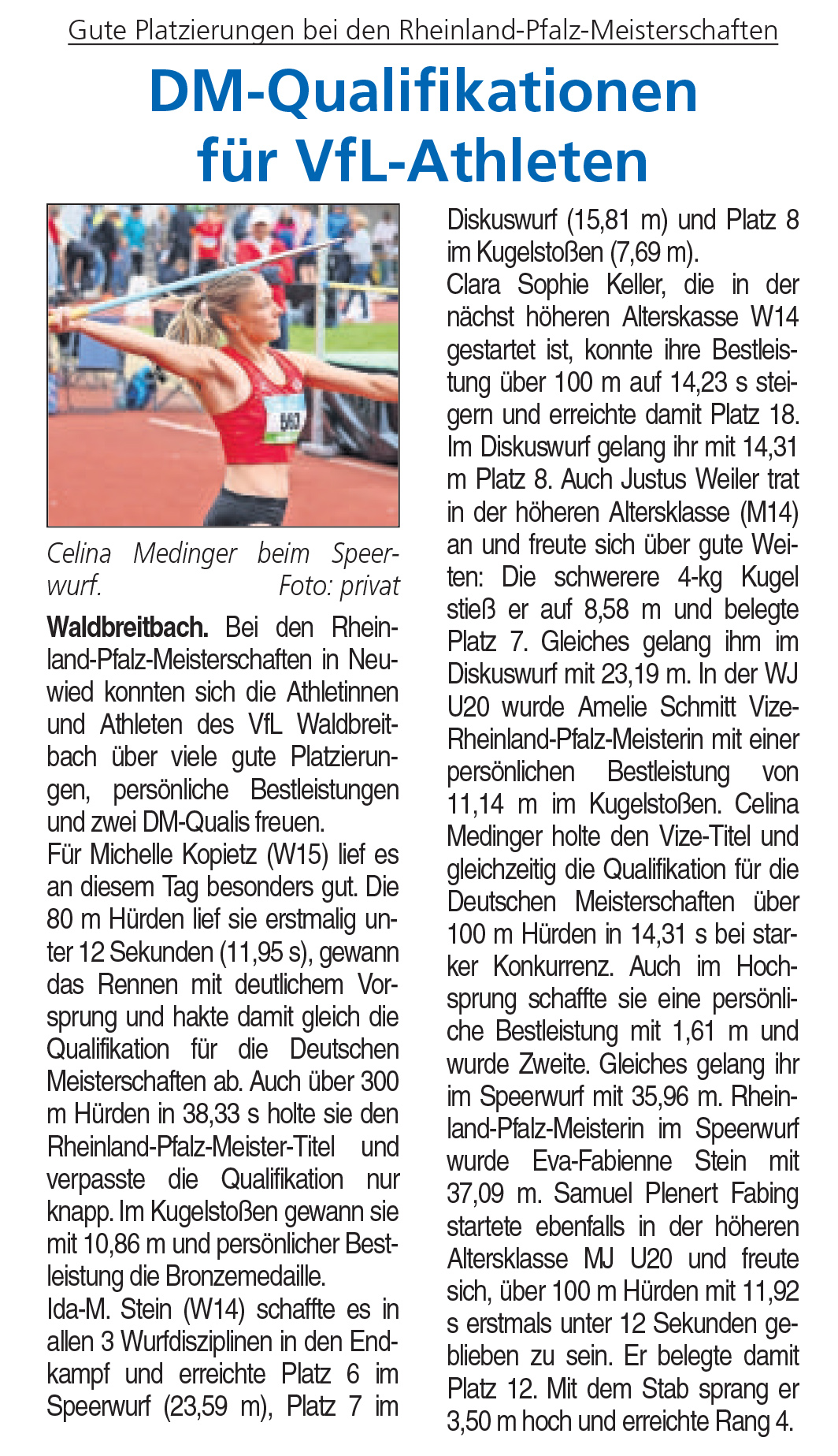 2025-07-19 Rhein-Zeitung Celina Medinger bei Jugend-DM