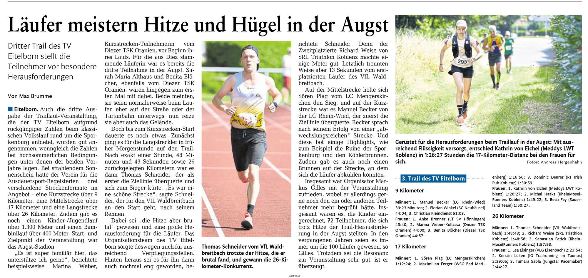 2025-07-01 Westerwälder Zeitung Thomas Schneider beim Trail-Run in Eitelborn