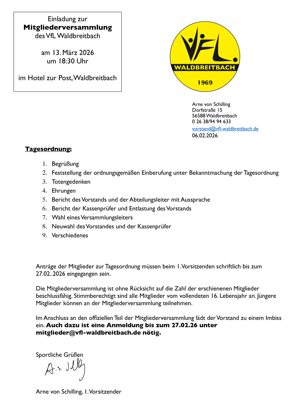 - Freitag, 13.03.2026 VfL-Mitgliederversammlung